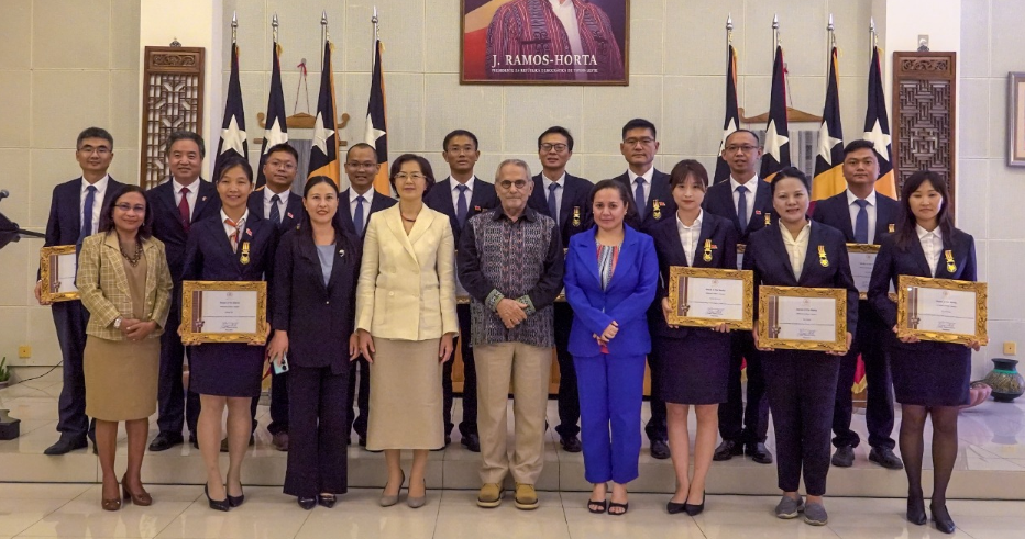 Dili, 23 de outubro de 2023 Em uma cerimônia memorável hoje, o Nobel da Paz e Presidente de Timor-Leste, J. Ramos-Horta, concedeu Medalhas de Mérito e Diplomas de Reconhecimento a doze profissionais médicos chineses por suas contribuições excepcionais para o desenvolvimento do setor de saúde de Timor-Leste. Este ato de reconhecimento é um símbolo de profunda apreciação por sua dedicação e serviços inabaláveis.