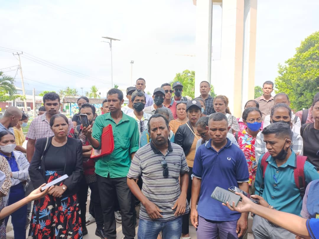 Tve-t, Segunda – Feira (12/02/2024): Dili – Relasióna ho Asaun Pasifiku husi manorin kontratadu sira, hasoru Ministeriu Edukasaun Dulce De Jesus iha edifisiu Ministeriu Edukasaun Vila Verde, nune’e Polisia Nasionál Timor-Leste (PNTL) halo kaptuprasaun ba manorin na’in sia (9) inklui porta voz Agustinho Pintu.