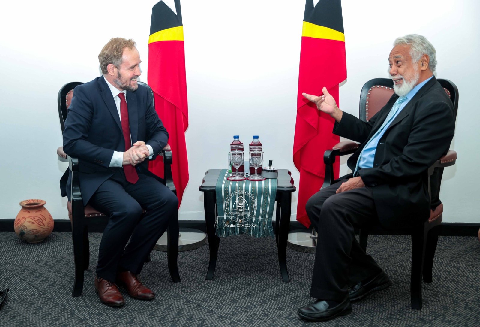 “Ami ko’alia konaba situasaun atual Timor-Leste nian ba dezenvolvimentu nasaun nian ami mos ko’alia ligadu ho relasaun entre nasaun rua nian, oinsa Franca bele apoia dezenvolvimentu Timor nian iha parte saida de’it mak Timor-Leste Persija,”informa konselleru Franca Laurent ba jornalista sira iha palasiu Governo.