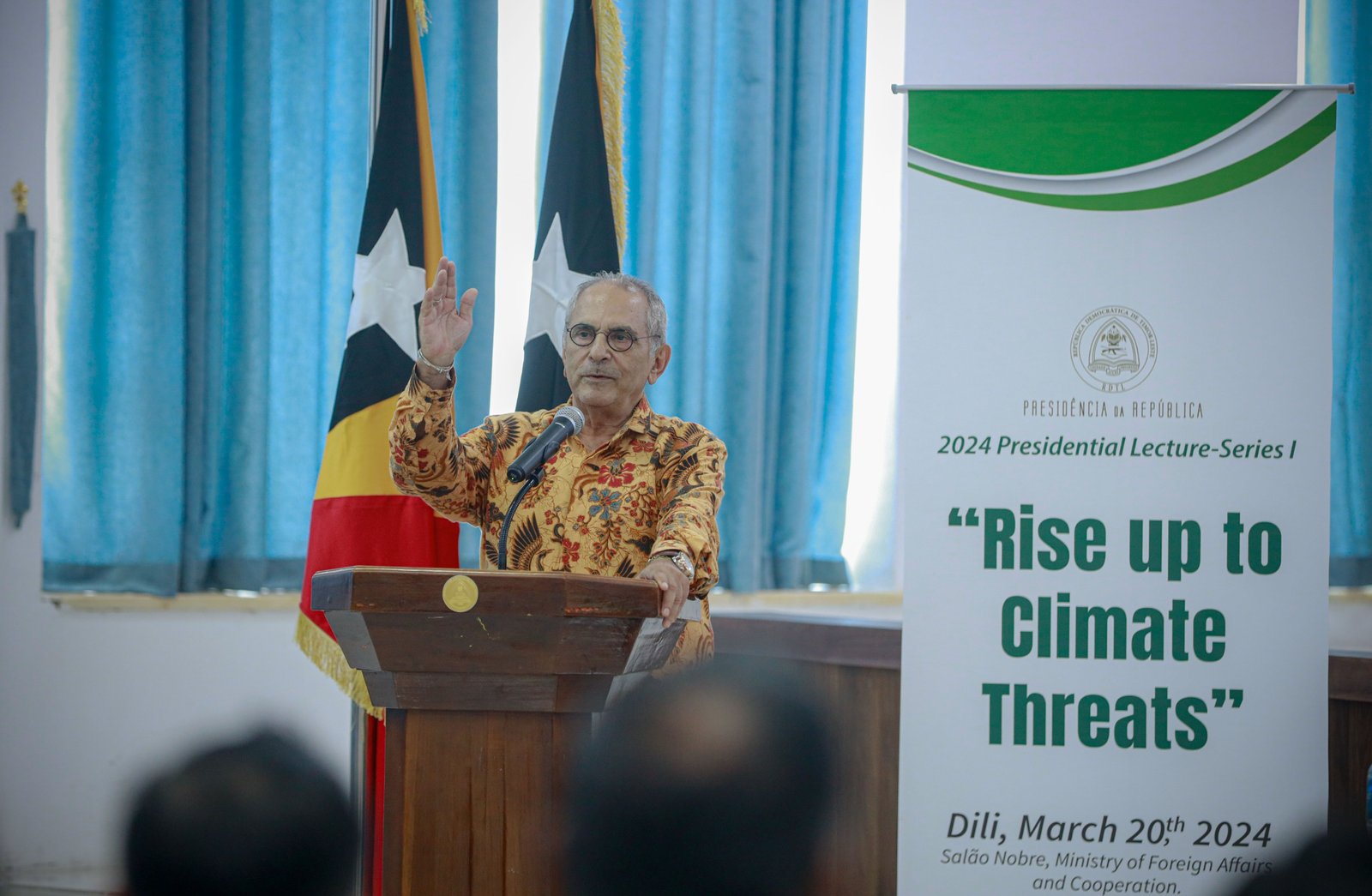 Palestra ida ne’e halibur hamutuk polítiku seniór sira, akadémiku, diplomata, parseiru dezenvolvimentu sira, reprezentante setór privadu no sosiedade sivíl sira atu hasa’e konsiénsia públiku kona-ba impaktu katastrófiku husi mudansa klimátika ne’ebé Timor-Leste hasoru no halo advokasia ba asaun klimátika iha setór hotu-hotu.